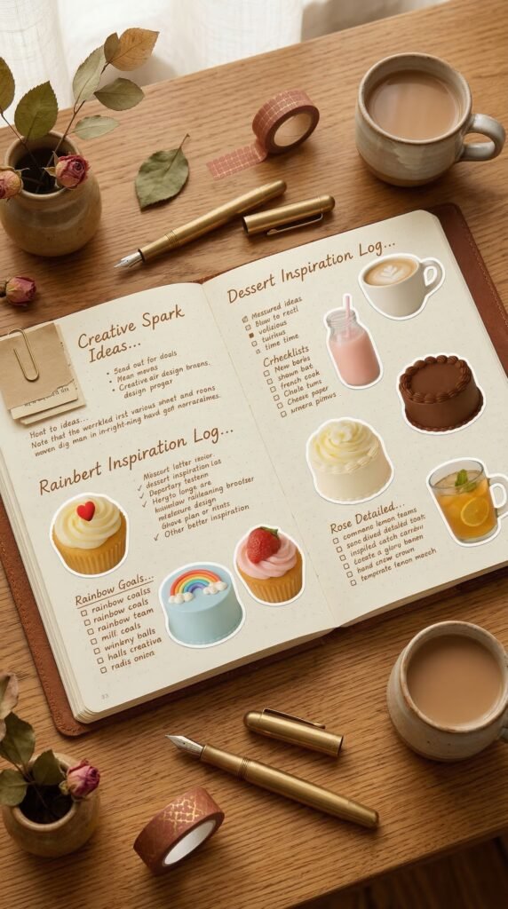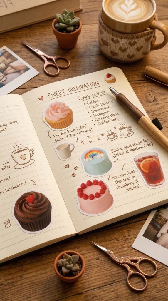 Perfeito para quem ama um visual cute, confeitaria e cozy, ideal para journaling, planners, scrapbooking, decoração de cadernos e projetos criativos.