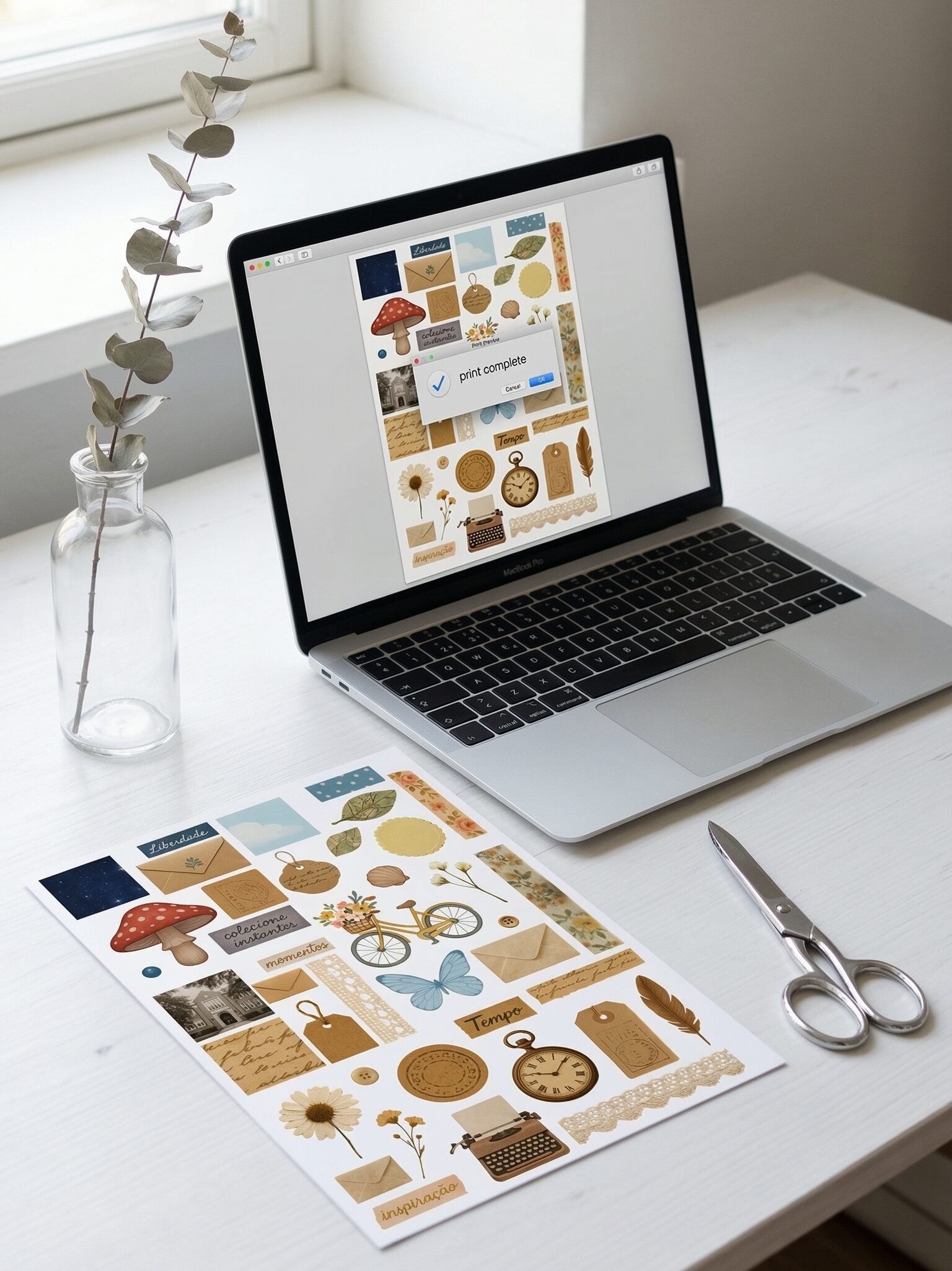 Basta baixar o arquivo em PDF, imprimir em papel comum ou papel adesivo e recortar para usar em seus projetos criativos.