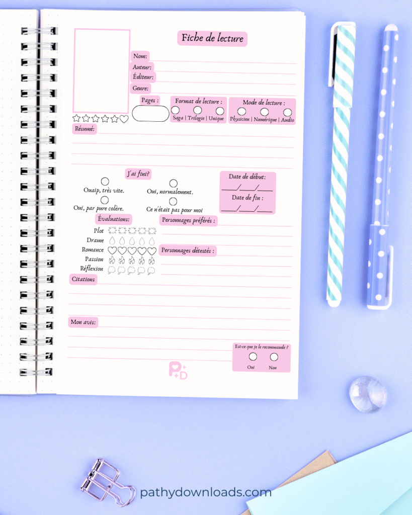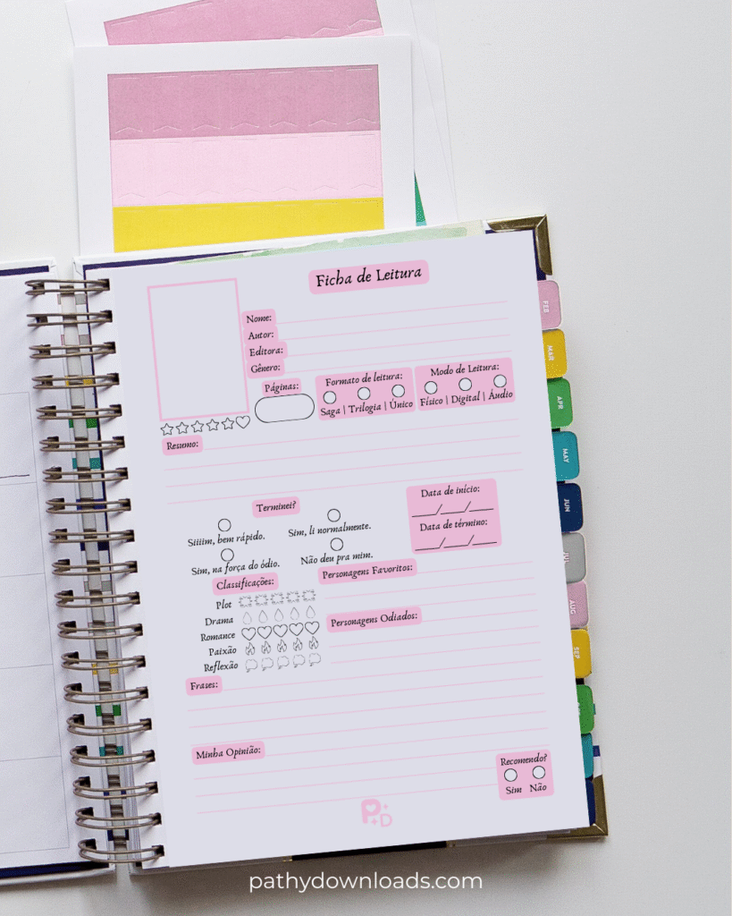 Ideal para leitores apaixonados, clubes do livro e planners literários, essa ficha está disponível em vários idiomas e pronta para impressão.