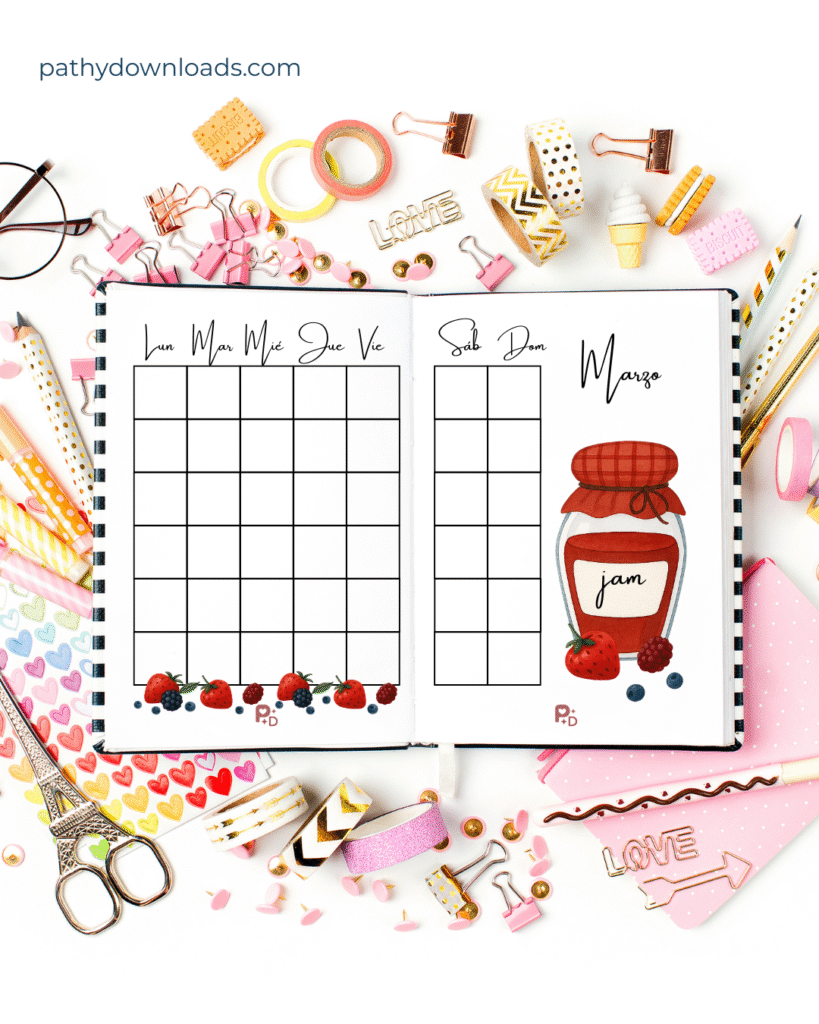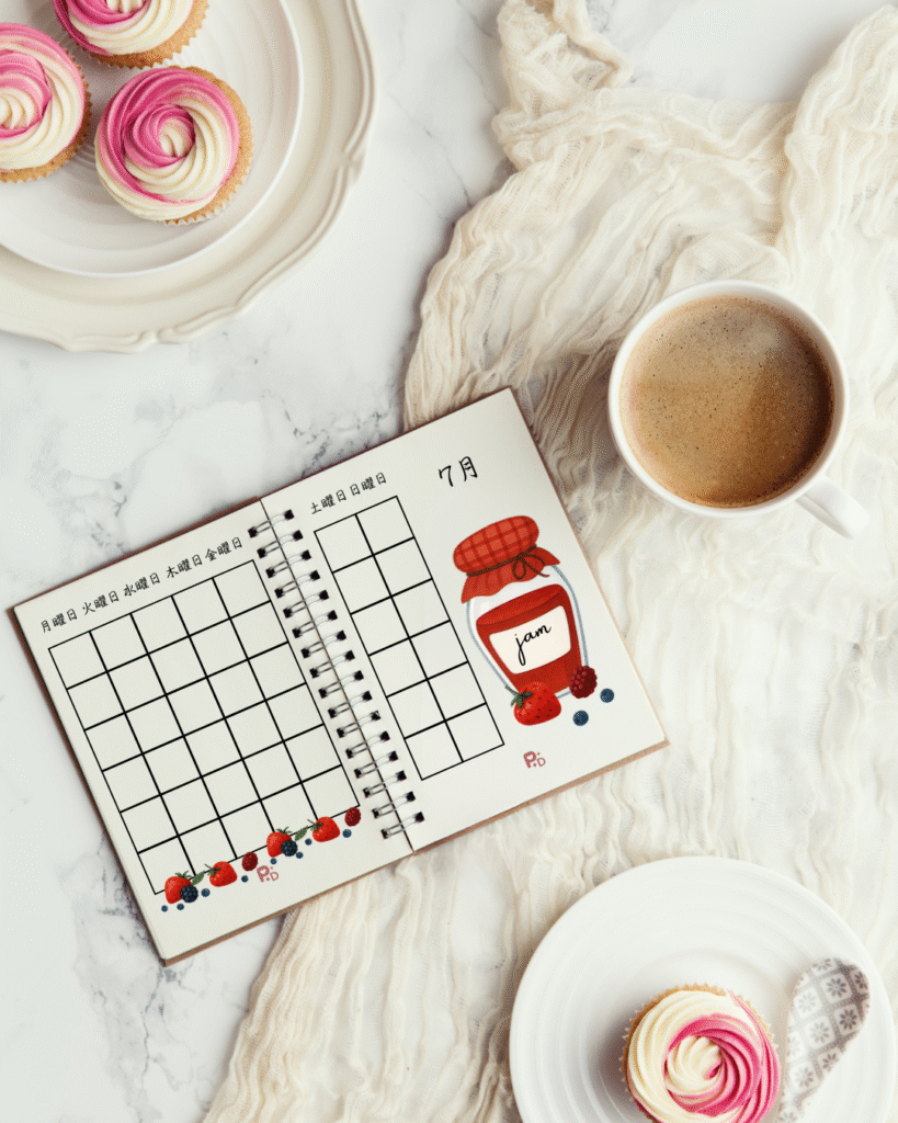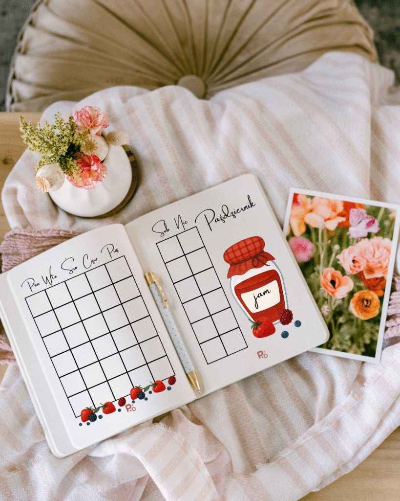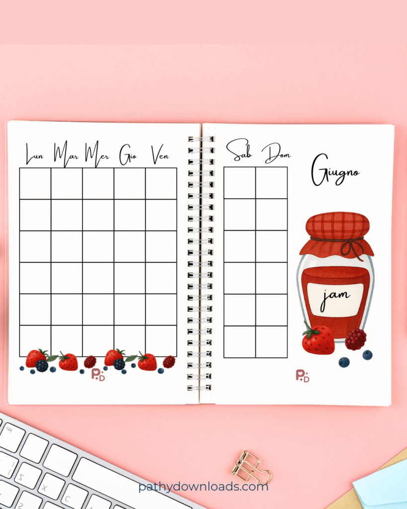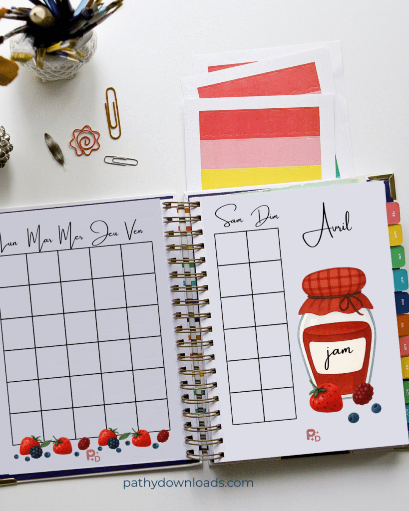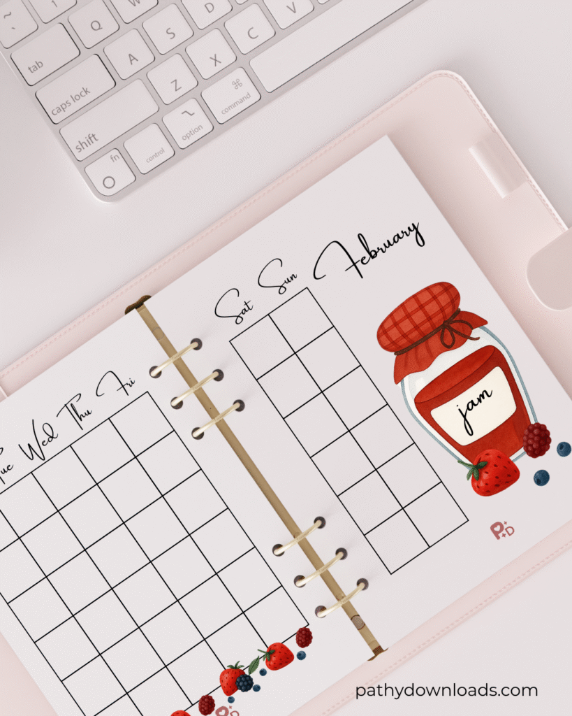 Organize seu ano inteiro com o nosso Organizador Mensal para imprimir, com um design delicado e ilustrações de geléia e frutas vermelhas que vão deixar seu planner ainda mais charmoso!