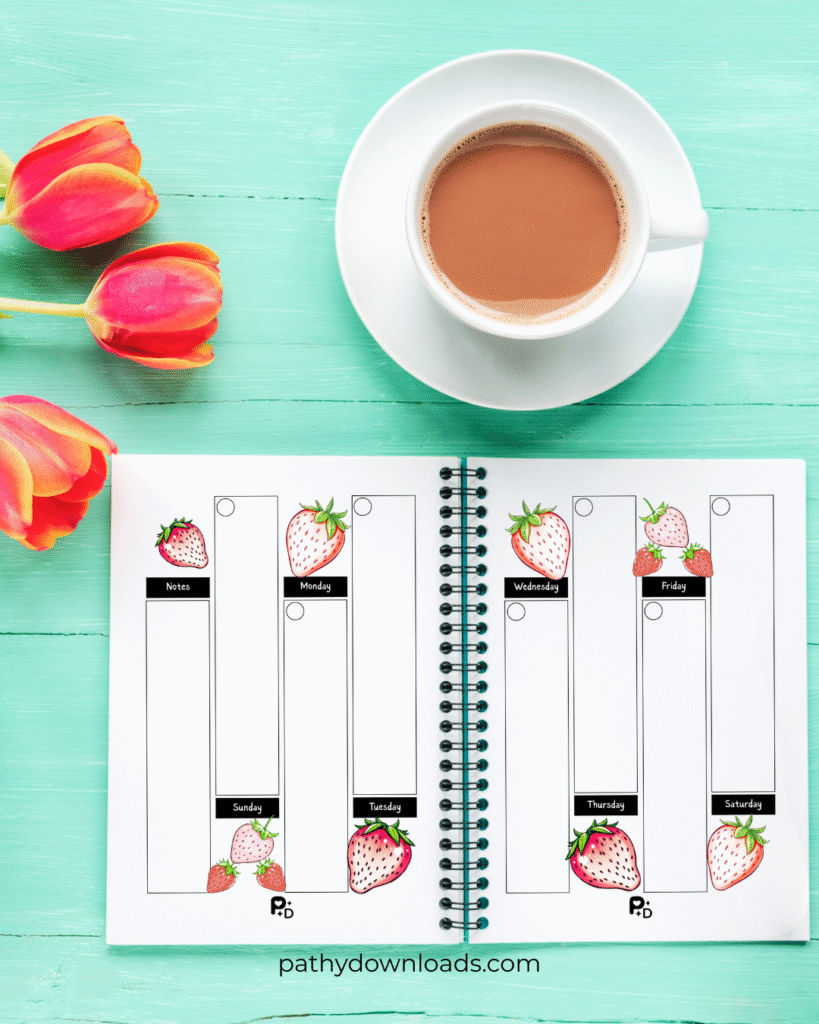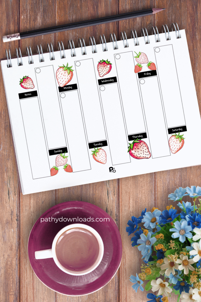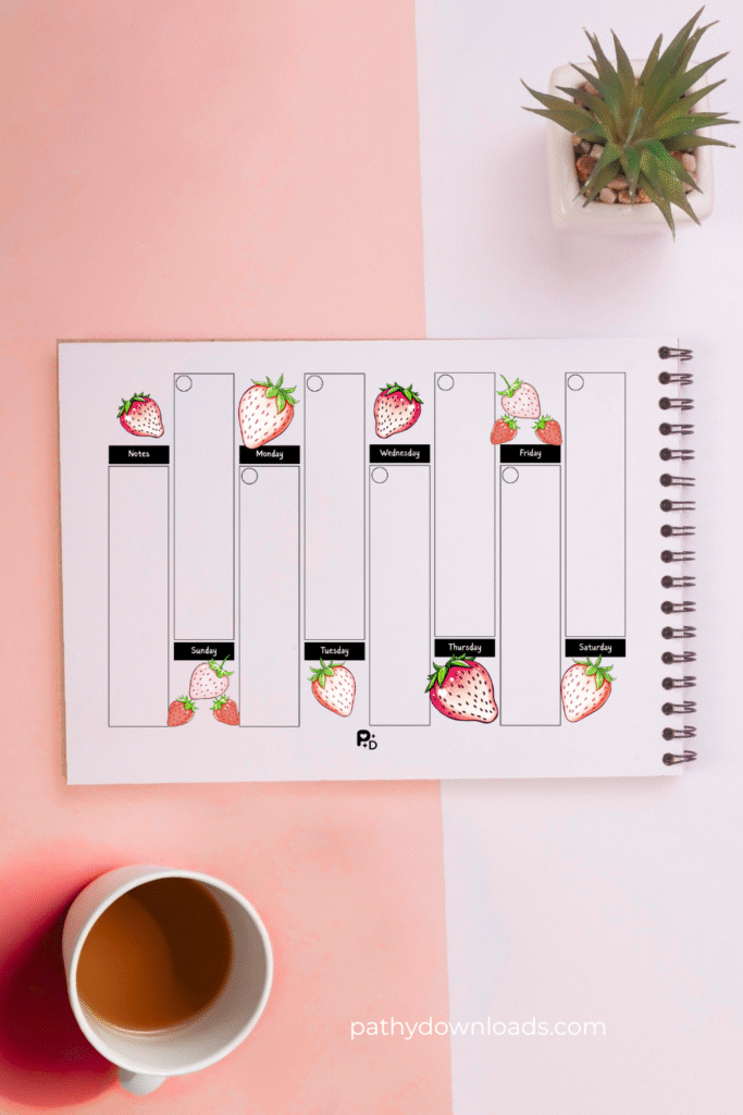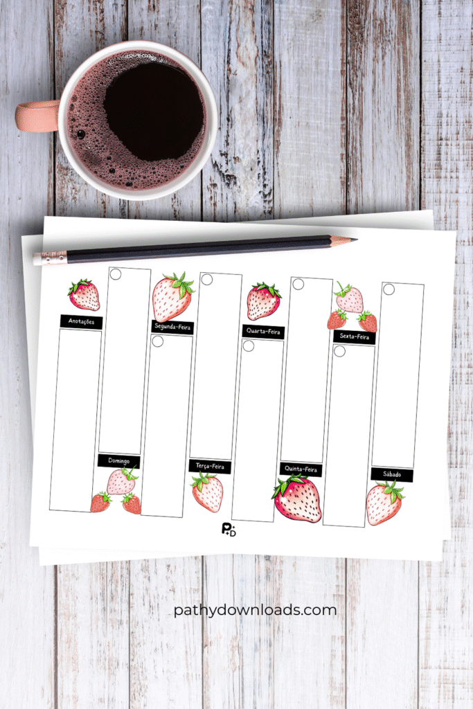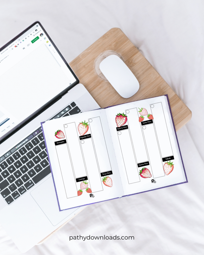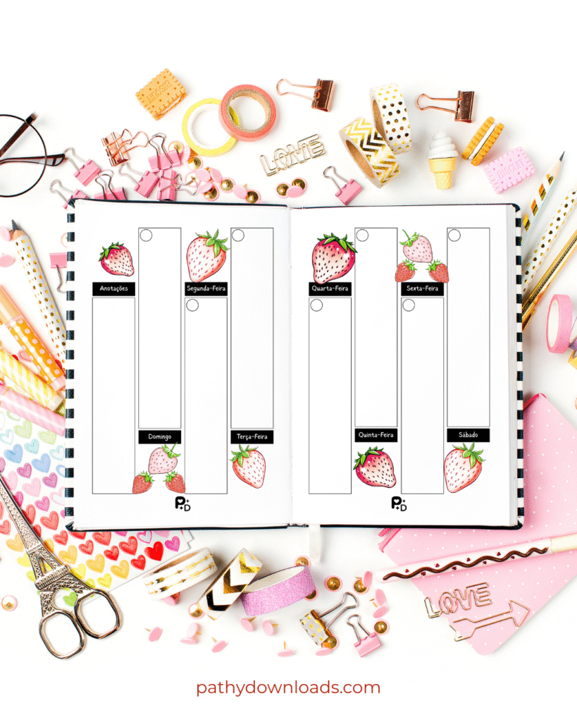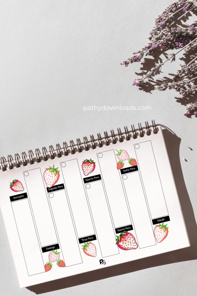 Torne sua semana mais leve e charmosa com nosso planner semanal com morangos! Com um visual moderno, delicado e funcional, este organizador é ideal para quem ama papelaria criativa, organização pessoal e layouts estilosos.