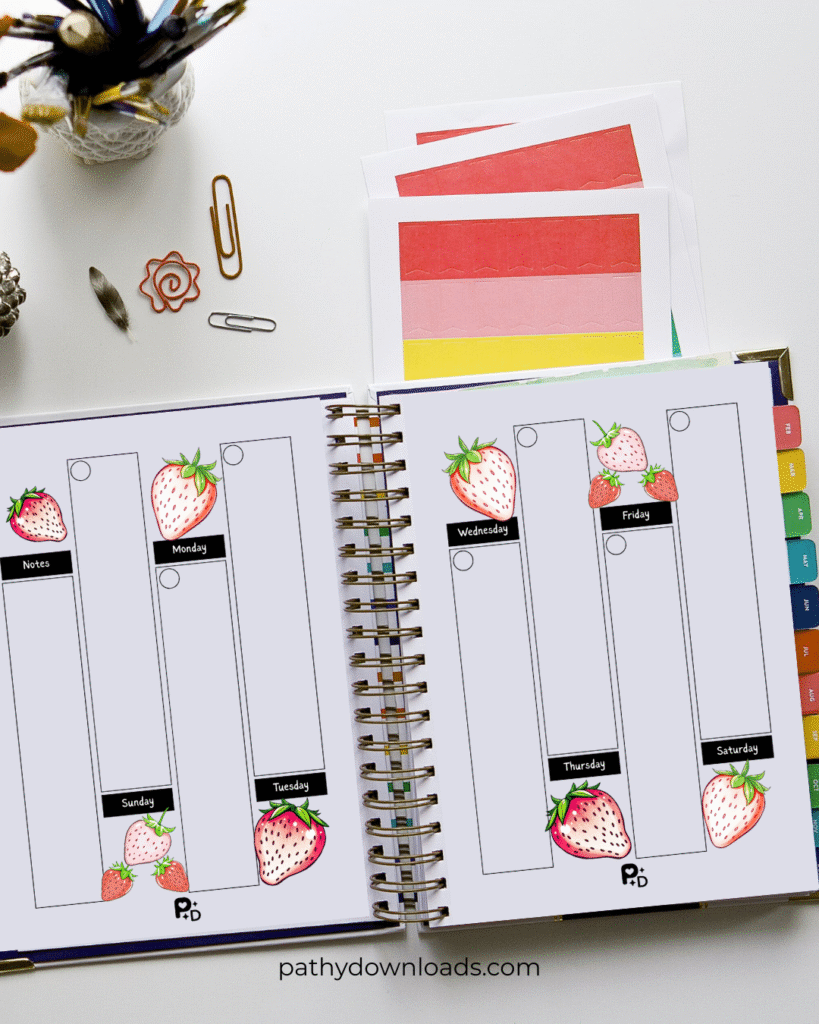 🍓Recorte e cole no seu planner ou fure e use com fichários e cadernos.