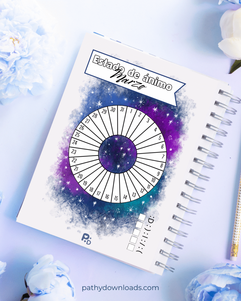 Com um design inspirado no céu estrelado, este arquivo em PDF traz os 12 meses completos, está disponível em vários idiomas e é perfeito para quem quer cuidar da saúde mental de forma criativa. 🌙✨